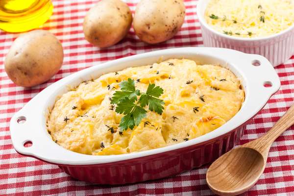 Картофель для гратена можно не отварить, но в таком случае его придется дольше запекать под большим количеством сливок.