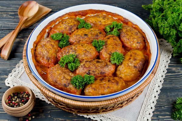 4. Смешать рис, грибы, овощи, зелень и фарш. Посолить и поперчить. Сформировать котлеты-голубцы.