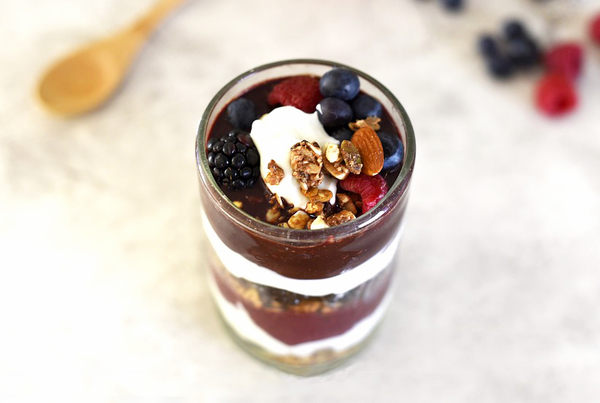 5. Добавить кусочки бисквита и полить ягодным соусом. Сделать 3-4 более слоя, заканчивая лимонным кремом. Накрыть десерт и поставить его в холодильник на несколько часов. По желанию украсить трайфл колотыми орешками.