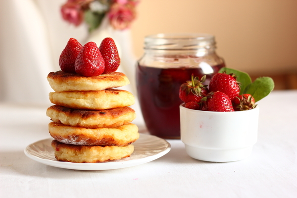 Благодаря тому, что сахара в таких оладьях немного, их можно подавать со сладкими и солеными соусами и начинками.
