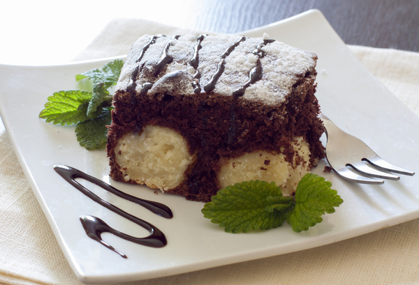 Шоколадный пирог с творожными шариками