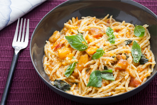 5. Готовую пасту подавать с соусом и тертым пармезаном.