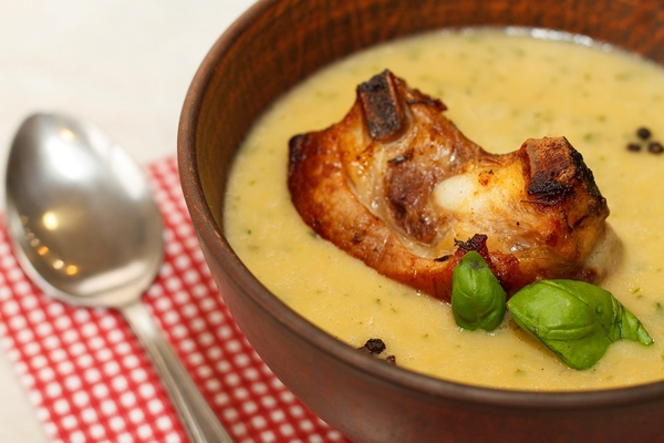 9. Вынуть из супа ребрышки и перебить суп в пюре с помощью блендера или другим способом.