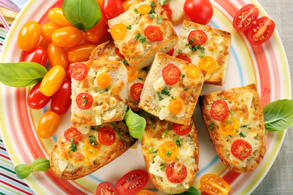 Тосты с помидорами, базиликом и сыром