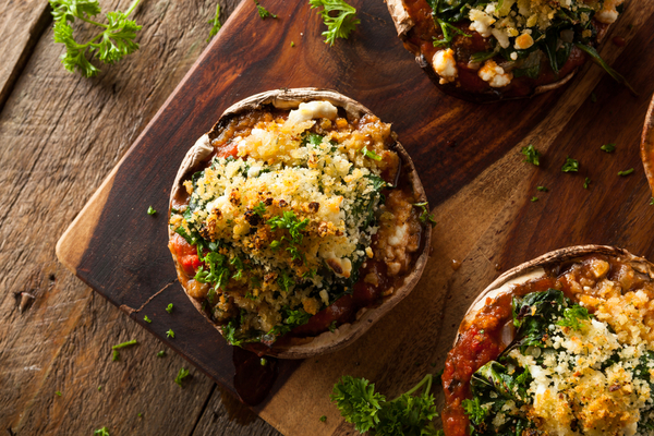 Выбирай для этого рецепта горячей закуски только очень большие шампиньоны или грибы портобелло.