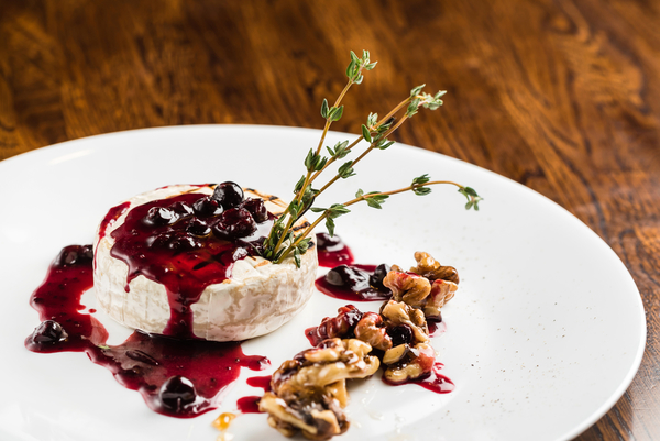3. Подавать сыр вместе с тимьяном, брусничным соусом (2-3 ст.л.) и поджаренными на сухой сковороде орехами.