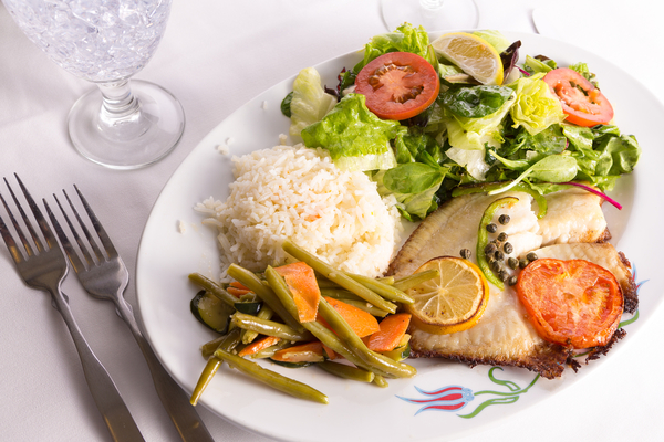 3. Шумовкой выложить овощи и рыбу на тарелку. Убрать сковороду с огня, в сок от рыбы и помидоров добавить масло, лимонный сок и каперсы. Перемешать соус до растворения масла.