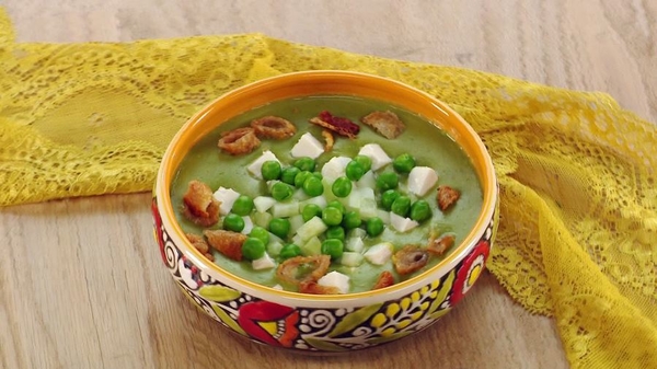 Крем-суп из зеленого горошка с ароматными хрустиками