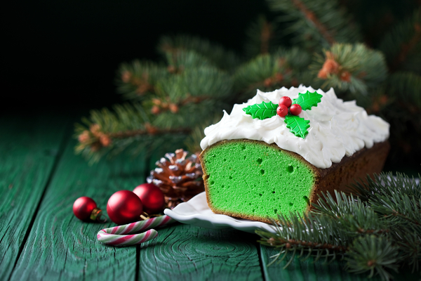 Готовим нарядный кекс на Рождество с добавлением зеленого японского чая матча.