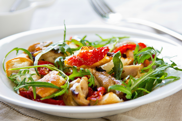 Рождественский салат из запеченной курицы с вялеными томатами