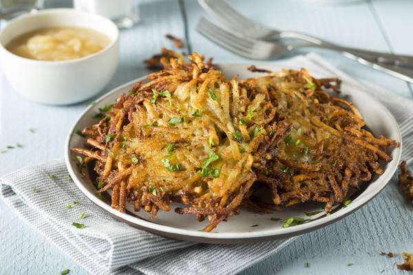 Простой рецепт картофельных оладий с пряным соево-чесночным соусом.