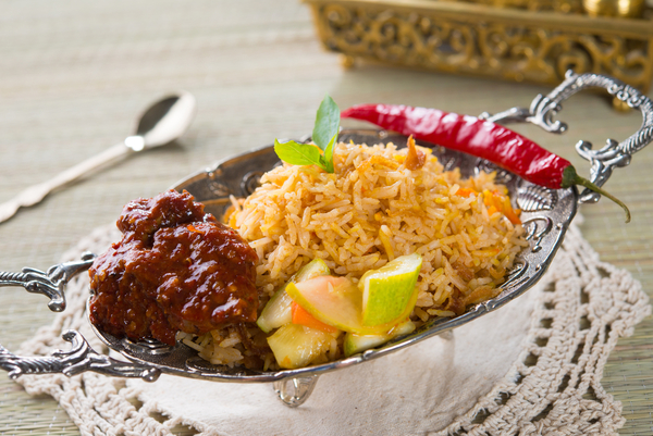 2. Добавить специи и рис, перемешать и жарить в течение 1-2 минут.