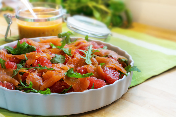 Авокадо считается одним из главных афродизиаков. Приготовь салат на День святого Валентина с авокадо, лососем и грейпфрутом.