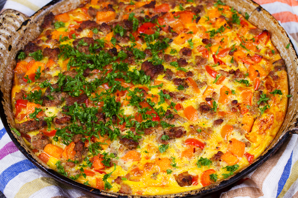 Готовим пиццу из картофеля в духовке с беконом, помидорами, пряными травами и сыром.