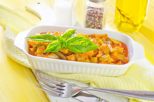 Быстрое вегетарианское рагу из кабачков, помидоров, зелени и чеснока можно подавать на гарнир.