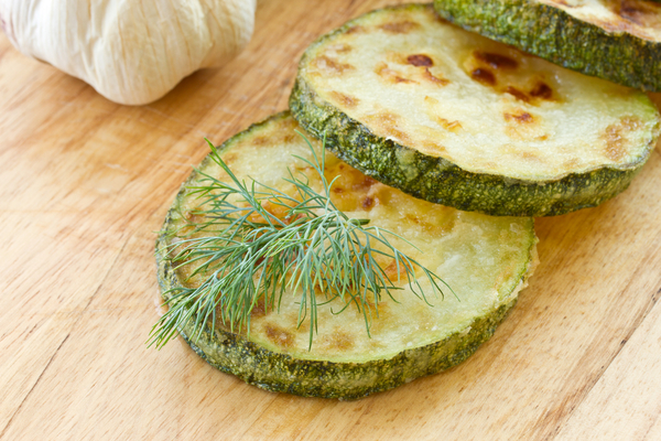 4. Готовые кабачки переложить на тарелку и подавать вместе с чесночным маслом