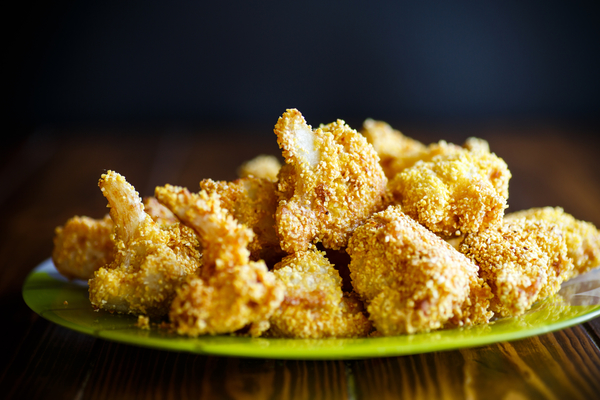 4. Ставим сковороду на плиту и наливаем масло, включаем средний огонь. По одному обмакиваем соцветия капусты в кляр, затем обваливаем в панировочных сухарях.