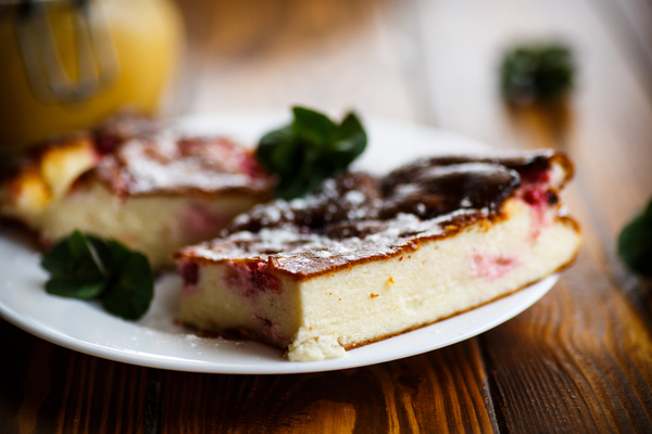 Для этой запеканки лучше всего подойдет нежирный творог или рикотта. Вместо клубники можно использовать другие ягоды или фрукты.