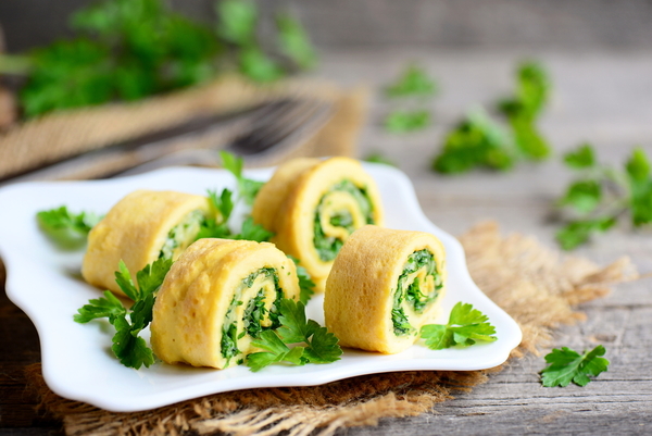 Яичные рулетики с зеленью и чесноком