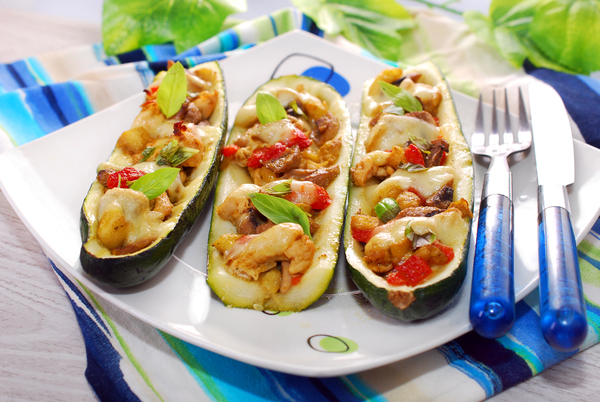 9. Запекать фаршированные кабачки в разогретой до 180°C духовке около 30-40 минут. Подавать блюдо горячим.