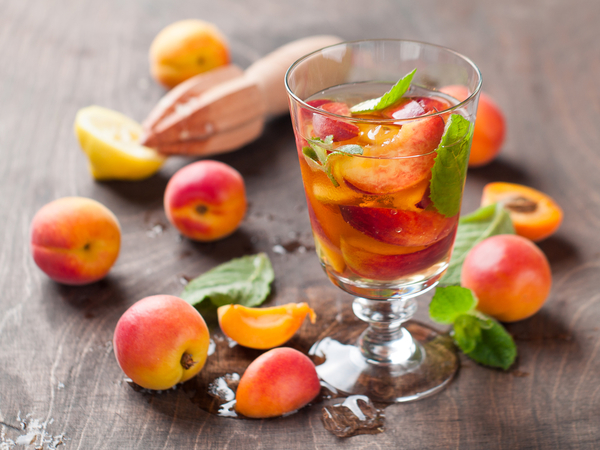 Рецепт освежающего летнего лимонада с персиковой мякотью. По желанию в напиток можно добавить немного корицы или ванили.