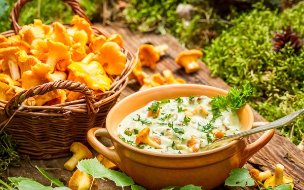 Возьми на заметку летний рецепт лисичек со сметаной, чесноком и квасом, запеченных в духовке.