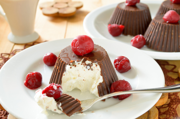 2. С помощью кулинарной кисточки смазать 5 силиконовых формочек емкостью 80 мл растопленным шоколадом. Поставить в морозильную камеру на 10 минут.