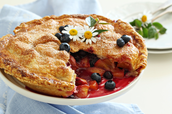 1. Нарезать персики и сливы; перемешать их в миске вместе с черникой, сахаром, мукой и корицей. Отложить в сторону.