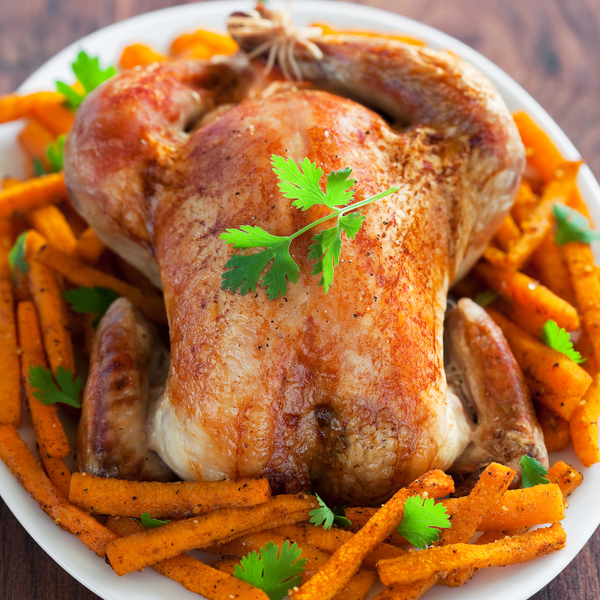 5. Подавать запеченную курицу вместе с тыквой фри.