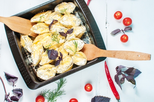 Рецепт пасты конкильони, приготовленной в духовке под соусом бешамель. Она идеально сочетается с овощным салатом.