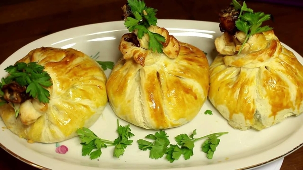 На каждый квадратик теста выложить картофельное пюре и поставить голень.