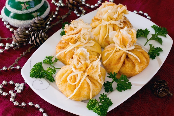 Оригинальная закуска: куриные торбочки с перепелиными яйцами