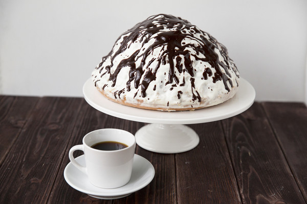Помазать торт шоколадной глазурью со всех сторон, сверху полить отложенным ранее сметанным кремом.