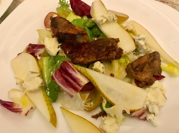 Готовим вместе с Андреем Дромовым: салат с куриной печенью, грушей и дорблю