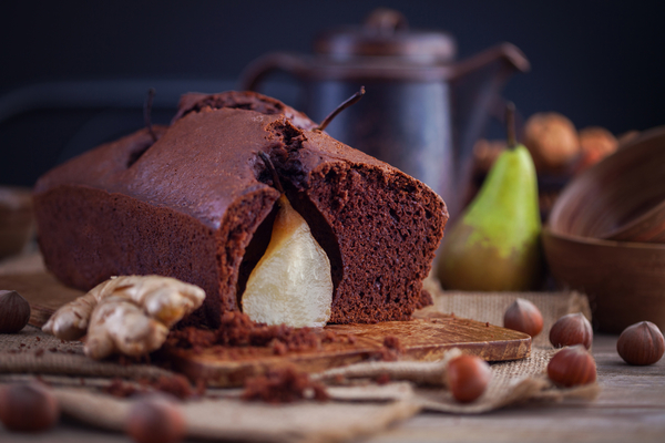 Кекс - бисквитный десерт, выпекаемый в специальной форме с отверстием посередине. У шоколадного кекса по этому рецепту насыщенный вкус, ведь в тесто добавляют не какао-порошок, а полторы плитки черного шоколада. Груши добавят десерту сочность и нежную консистенцию. Необычный вкус получится, если в тесто добавить чайную ложку молотого шафрана. Несмотря на то, что для приготовления грушевого кекса необходим десяток ингредиентов, сам процесс не займет много времени. Кекс выйдет воздушным, если вместо пшеничной муки взять рисовую.