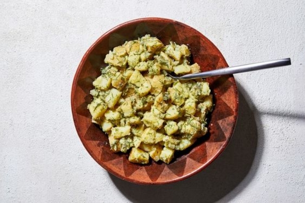 IVONA предлагает приготовить немецкий картофельный салат по классическому рецепту. Чтобы закуска была вкуснее, советуем использовать красный лук, а также зеленый лук. Заправку сделать на основе домашнего майонеза и горчицы.
