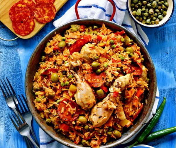 Чтобы приготовить курицу по-карибски, необходимо запастись большим количеством ингредиентов, и настроиться на длительное приготовление - около 2,5 часов. Блюдо получается довольно пикантным ведь здесь используется сладкий и острый перец, орегано, бекон, ветчина и копченая колбаса чоризо. Последнюю можно заменить любой хорошей копченой колбасой.