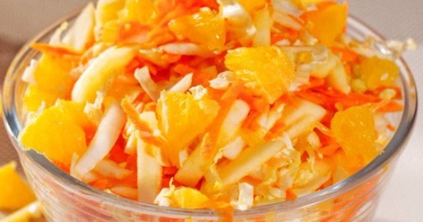 - Перемешать капусту с апельсином, ананасом и яблоком.