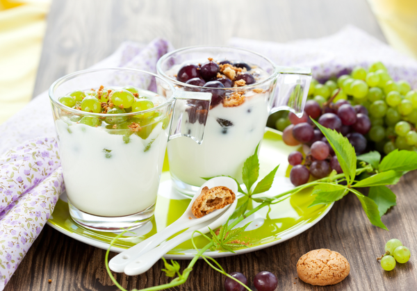 Мы предлагаем приготовить оригинальный десерт с виноградом, печеньем и сливочным сыром маскарпоне. Этот рецепт можно встретить во многих кулинарных книгах Германии. Для приготовления десерта можно выбрать любой сорт винограда, главное - без косточек. Лучше всего для этого подойдет сорт киш-миш. Если использовать сорта с косточками, тогда каждую виноградинку нужно разрезать пополам и очистить. Творог необходим любой жирности, а вот сливки лучше взять пожирнее. Маскарпоне при необходимости заменяют любым сливочным сыром. Десерт с виноградом готовится очень быстро, ему не надо застывать в холодильнике, достаточно оставить готовое блюдо на полчаса для пропитки. Мы советуем готовить десерт порционно.