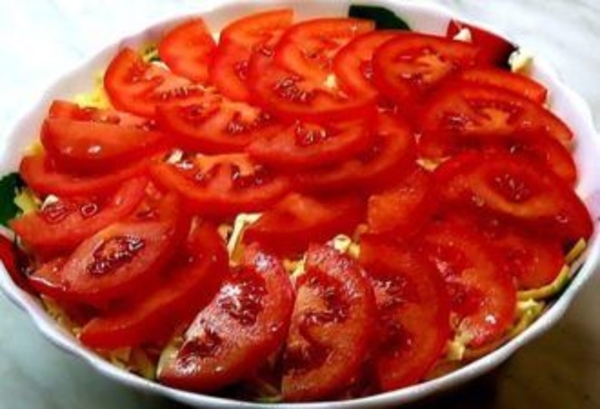 - Украсить кольцами из помидоров.