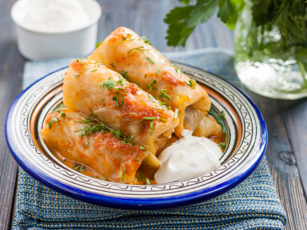 - Подготовьте капусту. Вырежьте кочан, опустите его в кипяток и на медленном огне потомите, постепенно снимая уже обмякшие листья.