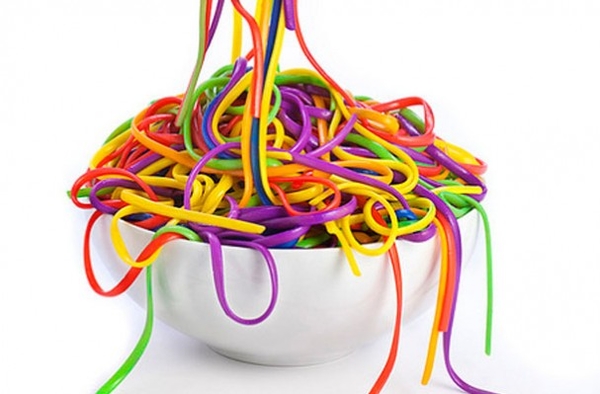 Генри и стилист Лиза Эдслав приступили к экспериментам с цветами различных продуктов. Котлеты из бургеров они окрасили в голубой и желтый цвета, а спагетти из супермаркета окунали в разноцветные красители.