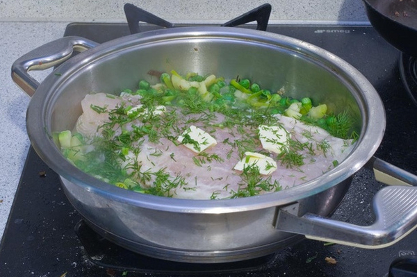 Готовится легко и просто. Лимонный сок и овощи делают пангасиус еще более нежным.