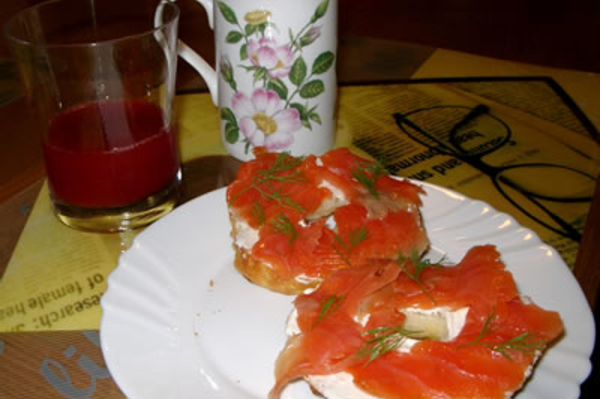 Багелс – английские бублики, полусладкие. Подаются к чаю сами или с мармедадом. Также подаются как антипаста с маслом, сырами, красной рыбой…