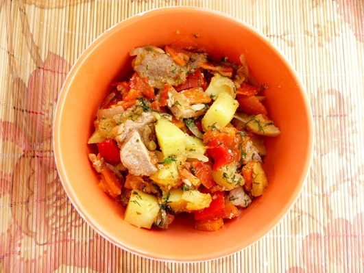 Жаркое с картофелем, красным перцем и помидорами.