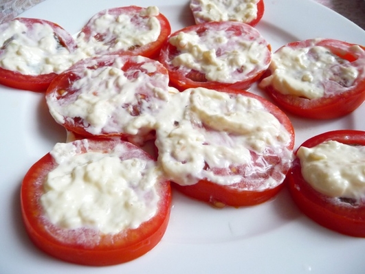 Быстрая закуска из помидоров с тертым сыром