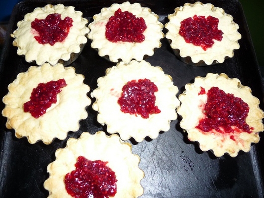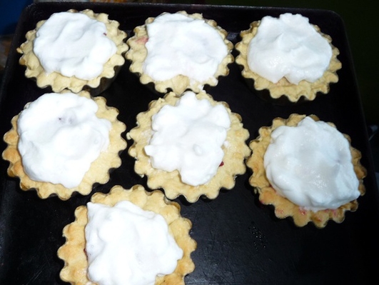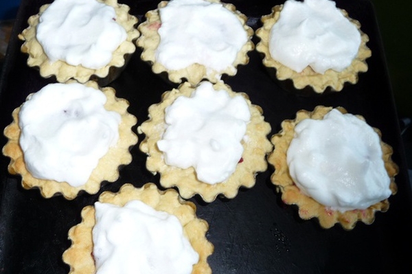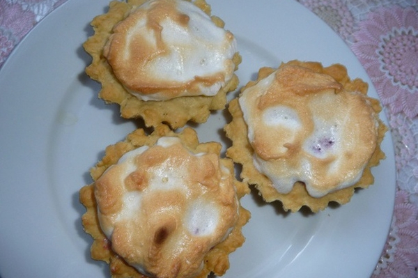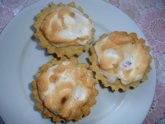 Вкусные песочные корзиночки с малиновым джемом и взбитыми белками