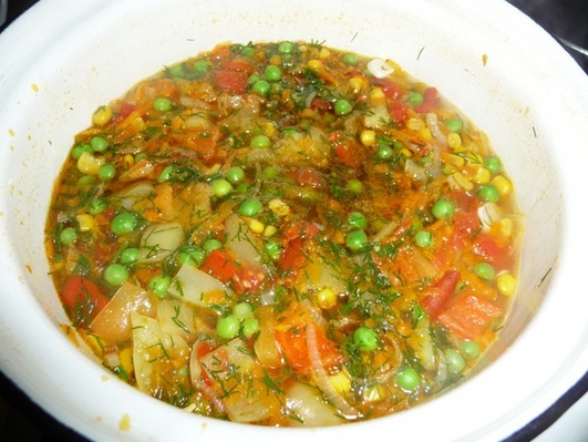 Кукуруза, горошек, телятина, помидор, перец... Все самое вкусное - в одной тарелке!