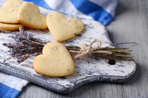 Приготовление: Взбить сливочное масло и мед в пышную светлую массу. Добавить взбитое яйцо и ваниль, тщательно перемешать. Добавить муку, соль, разрыхлитель и растертые цветки лаванды, перемешать. Скатать тесто в шар и поставить в холодильник минимум на 15 минут.