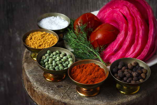 В процессе капуста окрасится в ярко-розовый цвет, а уже через неделю острая закуска из маринованной капусты и свеклы будет полностью готова.